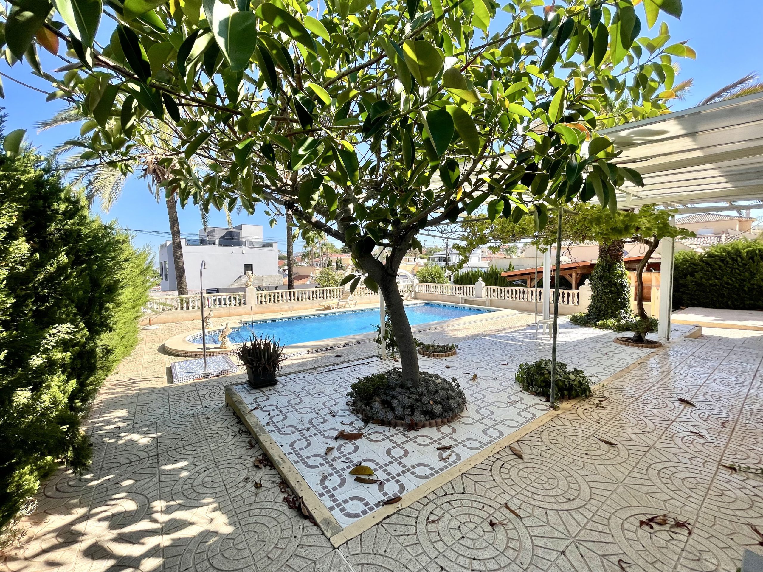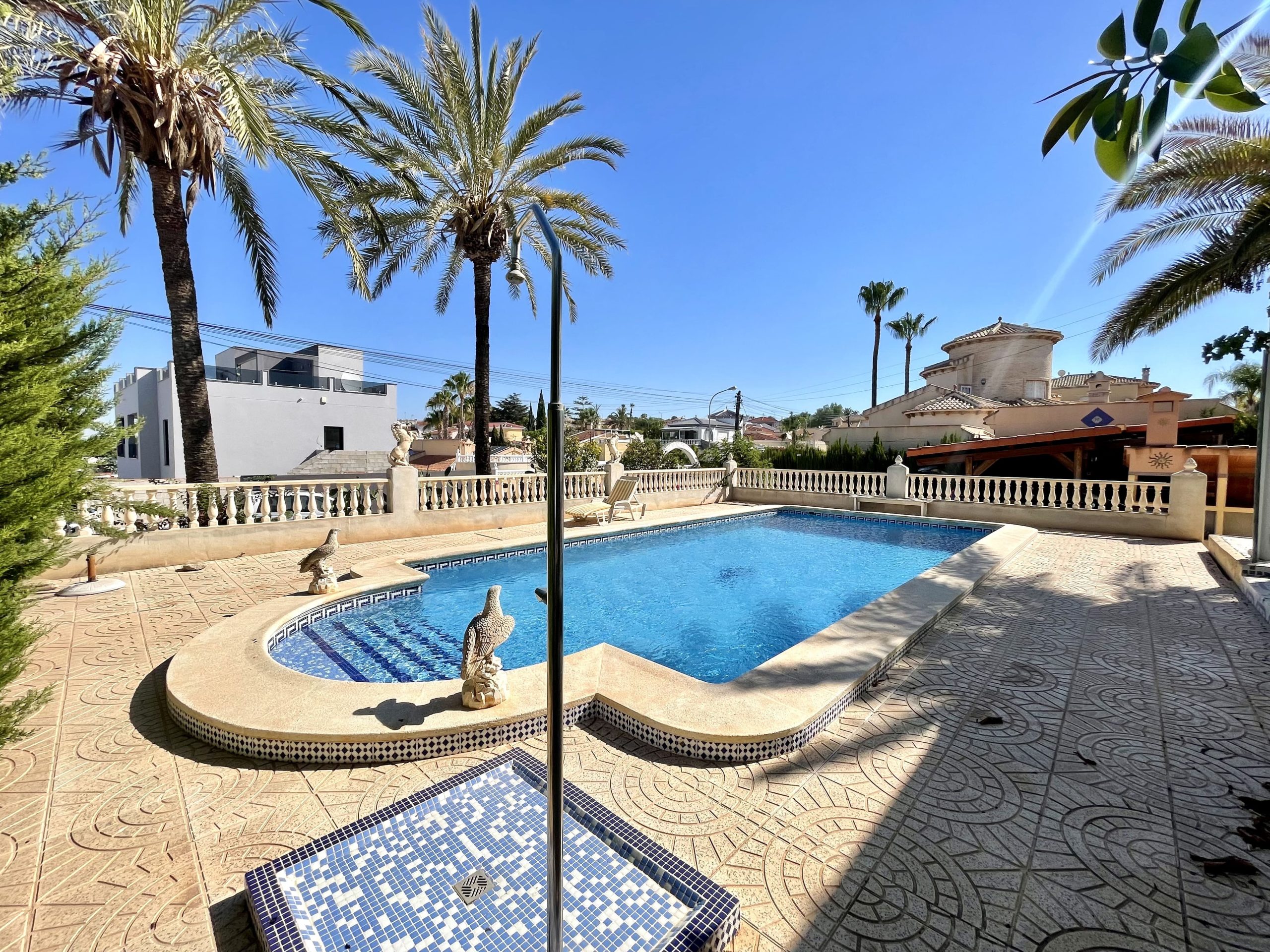 The villa has 700m2 built on a 1,200m2 plot with 5 bedrooms, 6 bathrooms, a spacious and bright living room with large windows overlooking the garden, two fully equipped kitchens, laundry room, elevator, dressing room, first floor terrace and solarium with observer.